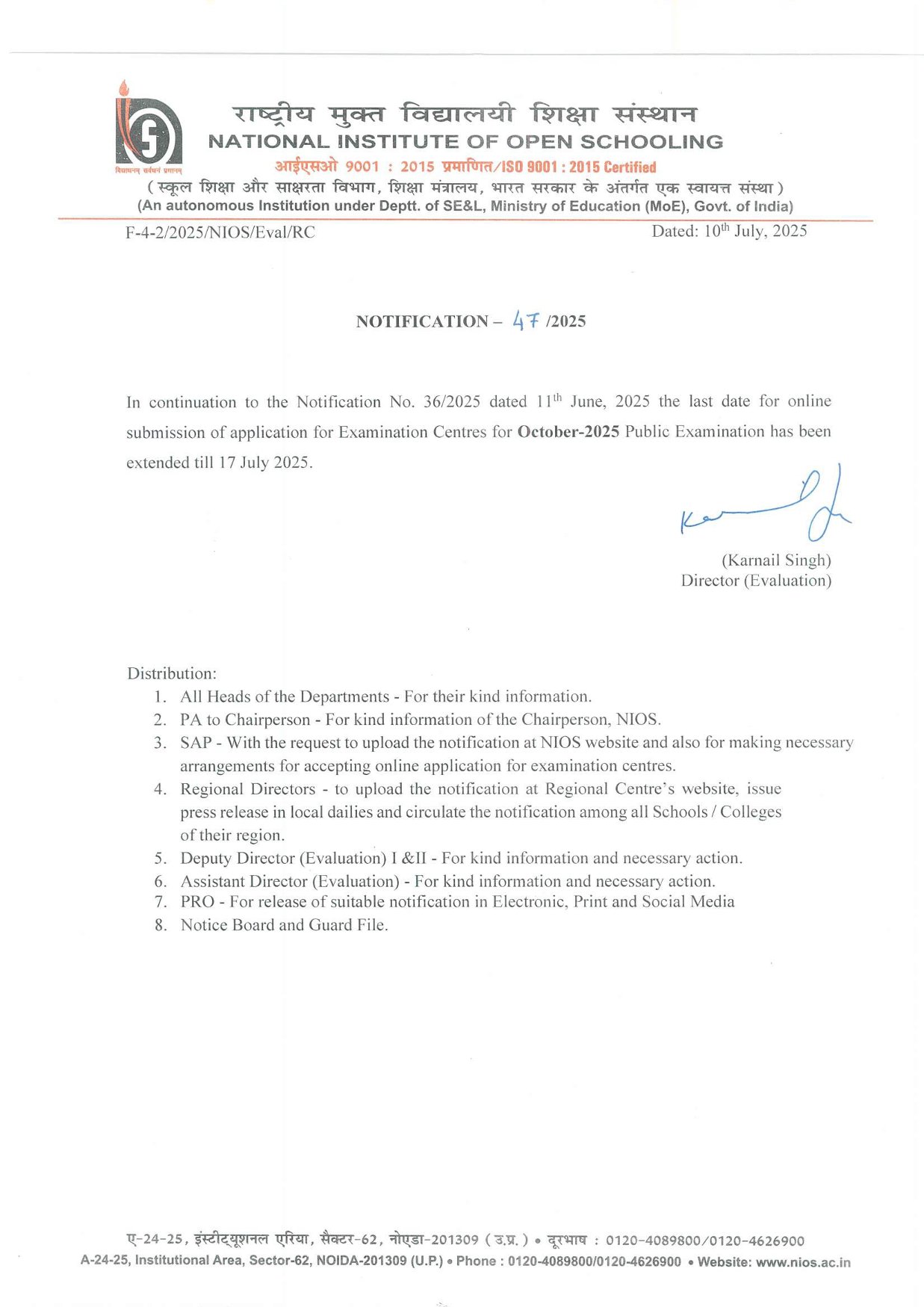 Date Extended for Exam Centre Acceptance for Public Exam Oct-Nov 2025