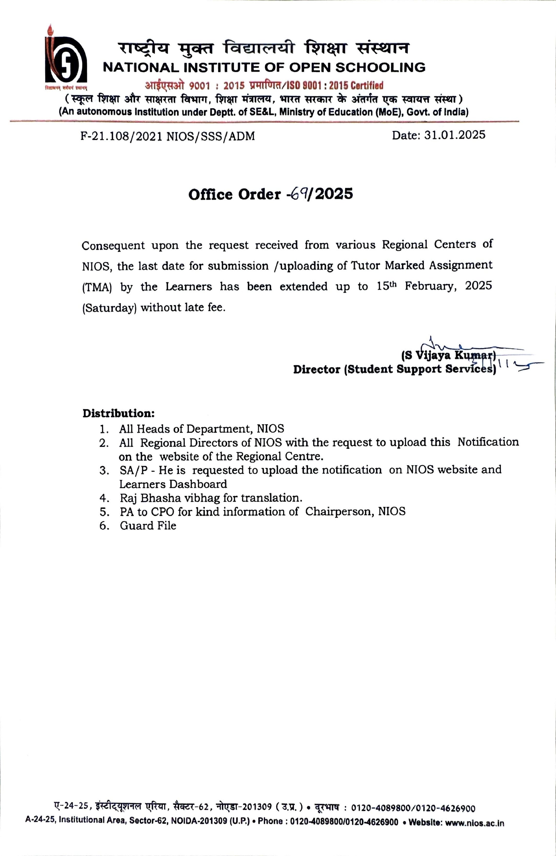 TENDER NOTICE - Post Examination Result Processing, Printing and Despatch Works of NIOS-NLMA under Basic Literacy Assessment (09-08-2021)